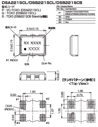KDS通訊系統(tǒng)晶振,有源晶振DSA221SCL,壓控溫補振蕩器,2520mm的小尺寸,支持廣泛的運行溫度范圍內(nèi)運行,支持低電壓,低相位噪音單體結(jié)構(gòu),依據(jù)AEC-Q100.溫補晶體(TCXO)貼片晶振,溫度穩(wěn)定性:0.5 PPM,2.0 PPM,應(yīng)用:全球定位系統(tǒng),智能手機晶振WiMAX和蜂窩和無線通信,符合RoHS/無鉛.
