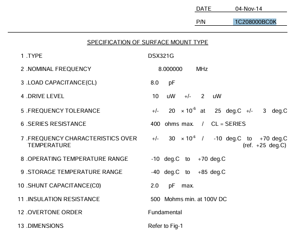 1C208000BC0K陶瓷晶振,日本大真空KDS晶振