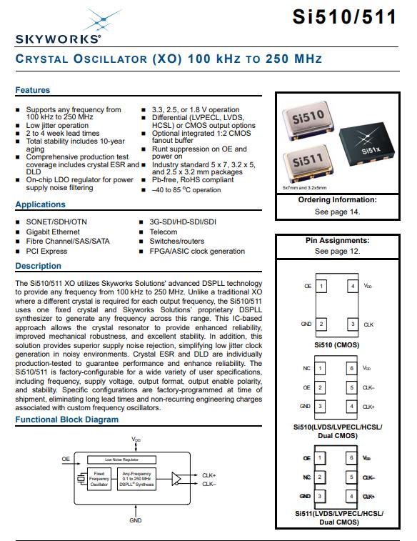 應用:SONET/SDH/OTN,千兆以太網(wǎng),光纖通道/SAS/SATA,PCI,Express,3G-SDI/HD-SDI/SDI,電信,交換機/路由器,F(xiàn)PGA/ASIC時鐘生成.