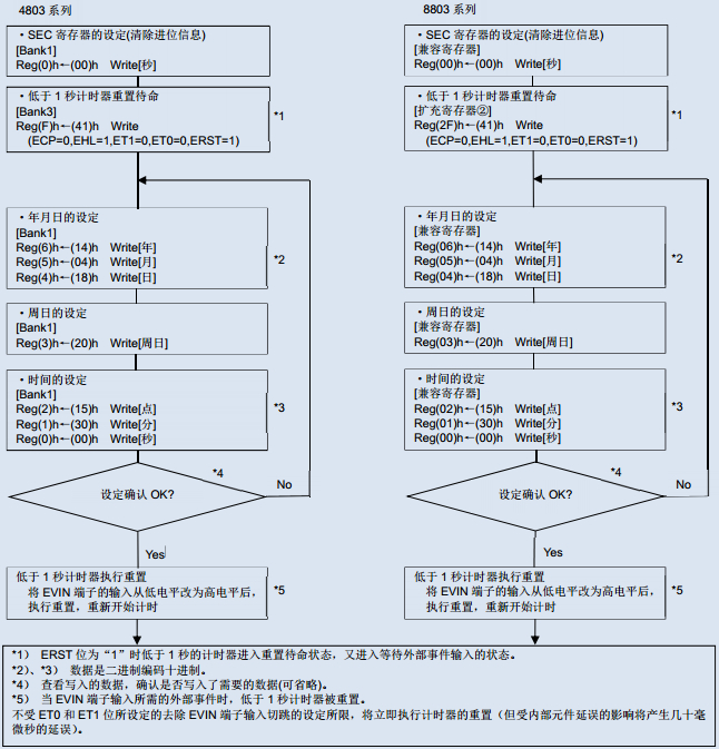 下文詳細說明使用上述兩種對時方法相關(guān)的寄存器,重置的動作及設定例.使用上述方法之前,務必先從外部輸入已同步的時間信息.