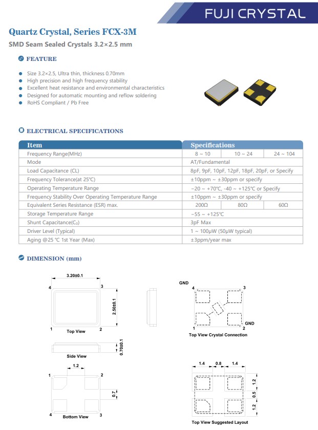 日本Fuji Crystal晶振,FCX-3M車(chē)規(guī)晶振,寬溫晶振