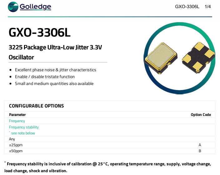 長期以來,Golledge Electronics一直是值得信賴的品牌,為從電信到航空航天的行業(yè)提供高質量的計時解決方案.GXO-3306系列因其卓越的相位噪聲性能.