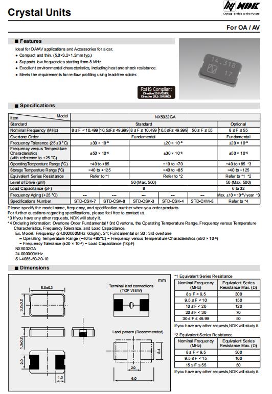 更多>>NDK緊湊型無(wú)源晶體NX5032GA-16.000M-STD-CSK-4專享于理想OA和汽車應(yīng)用