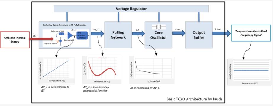 在下文中,將通過(guò)仔細(xì)研究TCXO的基本架構(gòu)來(lái)詳細(xì)解釋TCXO的功能.通常,TCXO由五個(gè)功能塊組成(圖2),