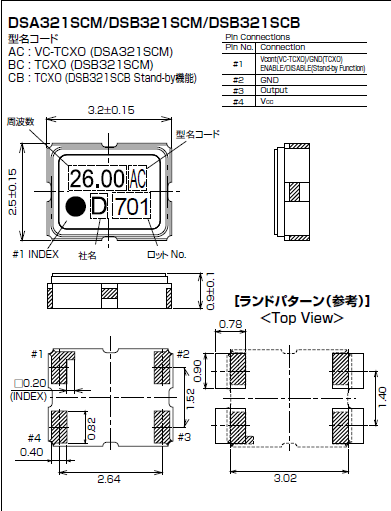 | KDS | 1XVD024000VA | DSB321SV | 3225 | 24.000M | 3.3V | 40ppm | 4腳 | 金屬 | |