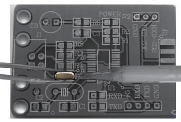 2.將貼片晶振固定到準(zhǔn)備好的電路板上