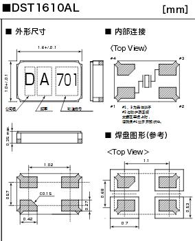 大真空科技不斷帶領(lǐng)晶振行業(yè)邁向新的方向,DST1610AL是集團(tuán)研發(fā)的超小超薄型貼片晶振.是全球范圍內(nèi)最小體積晶振. 超小型·薄型、SMD音叉型晶體諧振器DST1610A:1610尺寸厚度0.5mm max.采用陶瓷外殼、金屬蓋封裝,高精度、高可靠性支持移動(dòng)通信設(shè)備、民生設(shè)備等多用途作為抗噪音對策,將蓋子和背面端子連接,可以連接到GND(DST1610AL).
