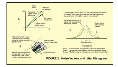 圖示出了矢量形式的信號及其相關的噪聲矢量,它可以在任何時間點建模為其原始矢量和噪聲矢量之和,該低噪聲晶振矢量是所有噪聲信號的合成當下,通過分析在值的分布和頻率上,我們可以表征相位噪聲,抖動和幅度噪聲出現(xiàn)在信號中并了解其原因和可能的改進,衡量的系統(tǒng)相位噪聲或抖動可以進行某種形式的分析,為了分析抖動,我們可以去除幅度變化,只看一下云的窄片表示采樣矢量的相位角,如果噪音是許多不相關的隨機噪音效果,然后相位值的分布將是高斯分布,在理想中心附近有很多叢生價值越來越遠.