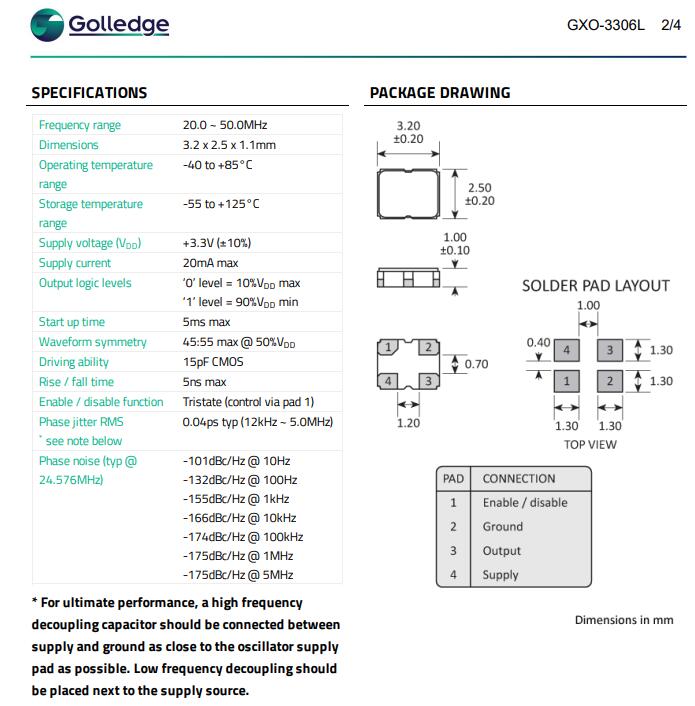 Golledge Electronics提供GXO-3306系列超低抖動(dòng)振蕩器.這些振蕩器旨在提供卓越的信號(hào)完整性,確保在苛刻的環(huán)境中提供準(zhǔn)確可靠的性能.